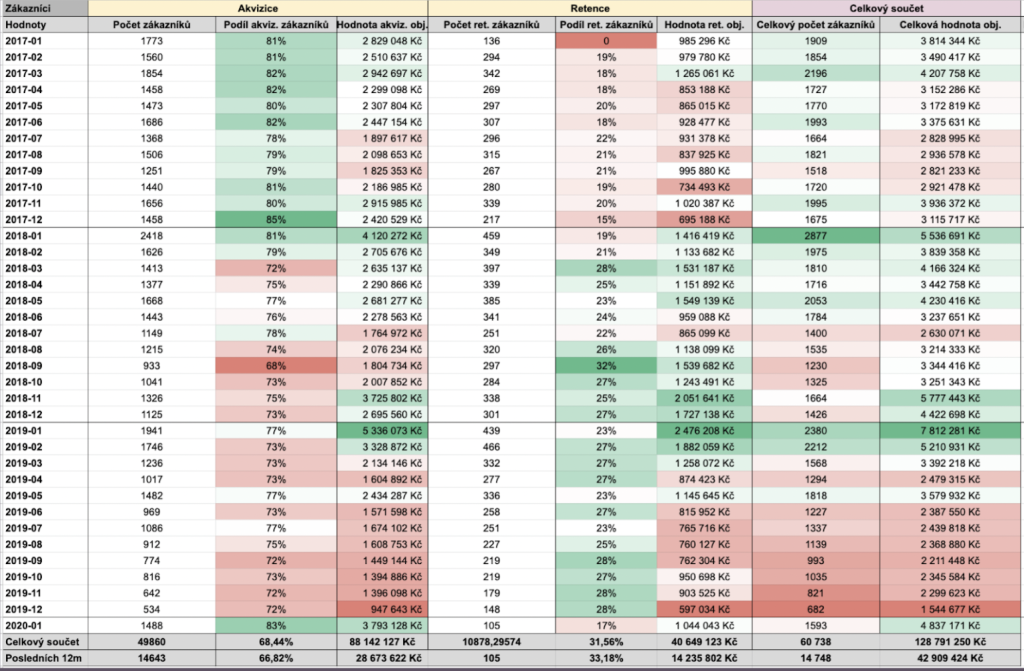 4) Jak vypadá výstup analýzy akvizice a retence?