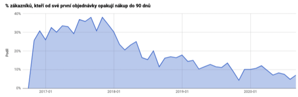 - Dokážete rychleji a lépe poznat firmu a validovat si cíle, které vám dali. Díky retenční analýze lépe poznáte fungování jejich byznysu. U jedné firmy jsme tak třeba zjistili, že maximální PNO, které nám zadali nedávalo smysl, protože se jim retence vůbec nedařila a každou objednávkou se dostávali do větších dluhů. U jiné firmy prodávající doplňky stravy jsme také objevili velmi nízký poměr retence. Proto jsme věděli, že nikdy nebudeme moct tolik růst, kolik by si přáli. Navíc se těžko soutěžilo s konkurencí, která své maximální CPA měla nastavené úplně jinde (kvůli vyššímu CLV).