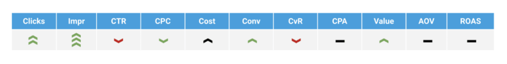 Volná shoda + bidovací strategie = VSL ❤️! Aspoň podle Googlu a Brainlabs, kteří provedli 54 testů a ve 46 případech vyhrála volná shoda. Průměrně zvýšila objem konverzí o 20 %. Takto se pak hýbaly další metriky: