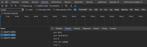 Pro techničtěji zaměřené uživatele máme ještě poslední způsob kontroly, kterým ověřujeme consent parametry odesílané přímo v Google značkách z prohlížeče uživatele. Postupujeme tak, že si v Developer Tools v záložce Network odchytíme odchozí hity na Google server. U payloadu pak kontrolujeme obsah gcd parametru.