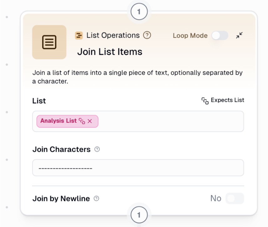 - Jednotlivé popisy scén sloučíme přes „Join list items“ do jednoho souvislého textu.