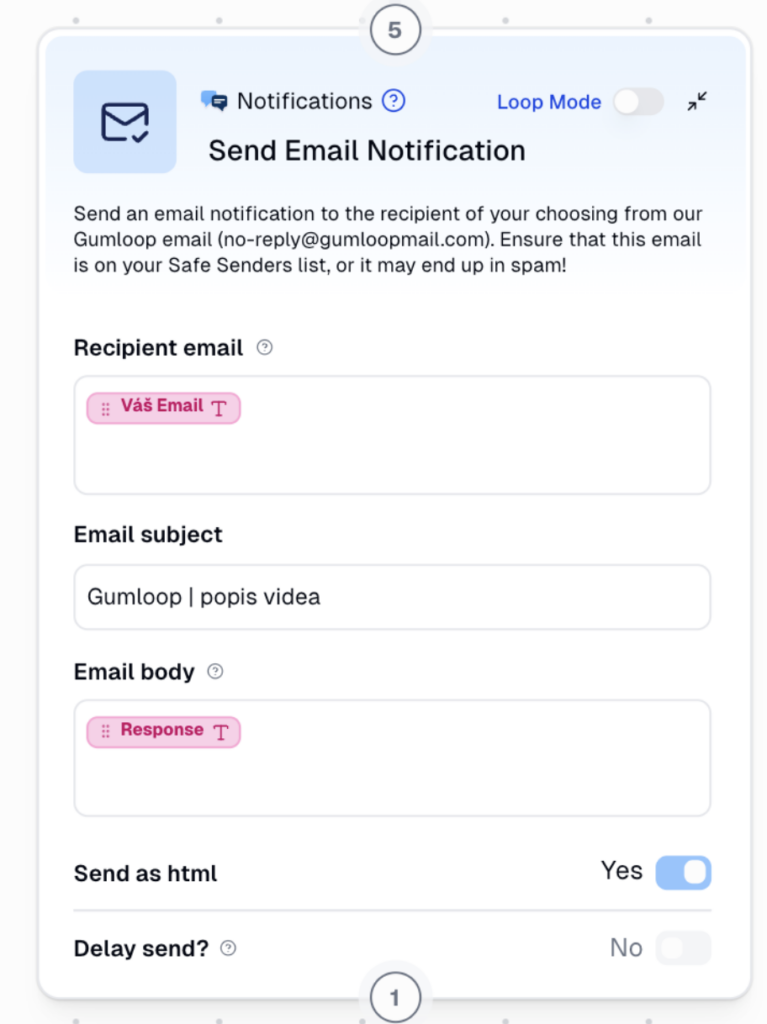 - Přes node „Send email notification“ dorazí kompletní analýza rovnou do schránky.