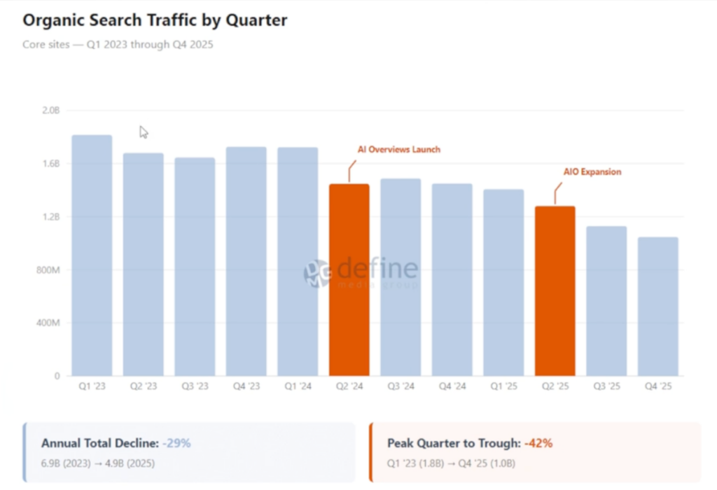 Organický traffic velkým publisherům klesl za poslední 3 roky na polovinu.