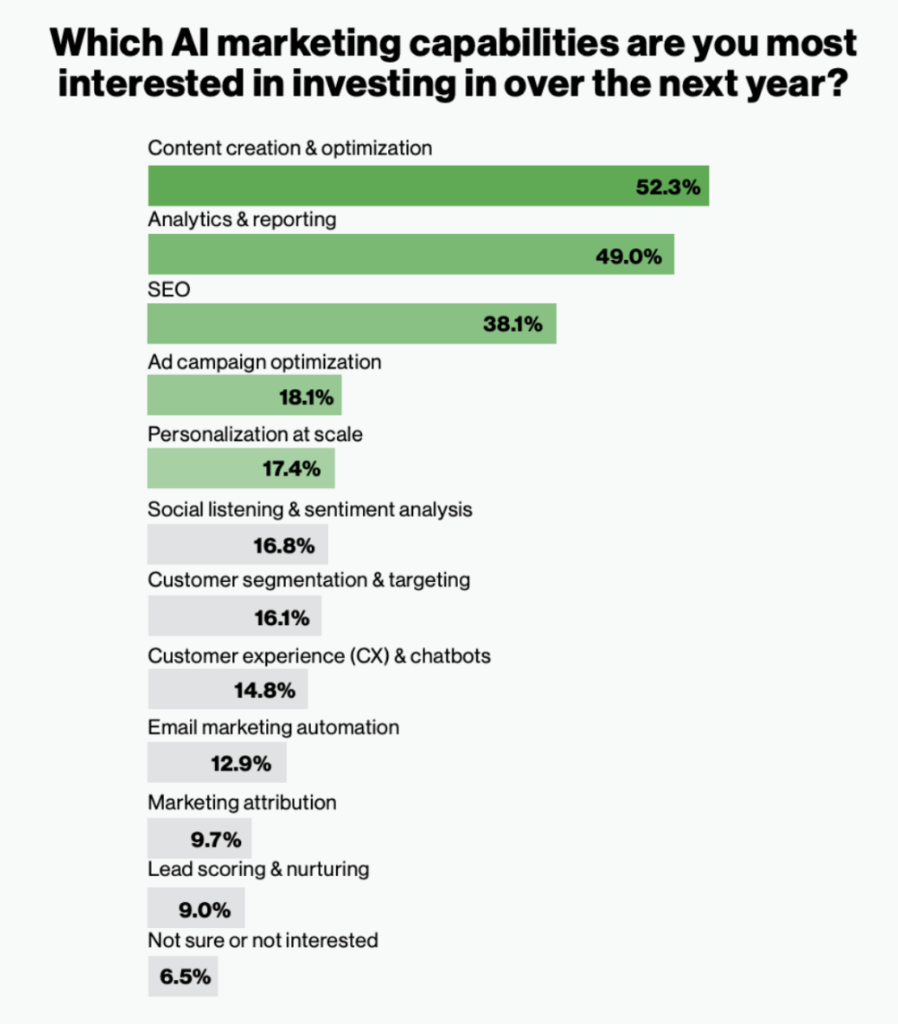 - Jak je na tom AI v marketingu: 82 % marketérů používá AI, nejvíc pro obsah. Nejvíc používaný nástroj ja ChatGPT, nejvíc si lidé chválí, že ušetří čas, ale už nejsou schopni spojit dopad AI na ROI.
