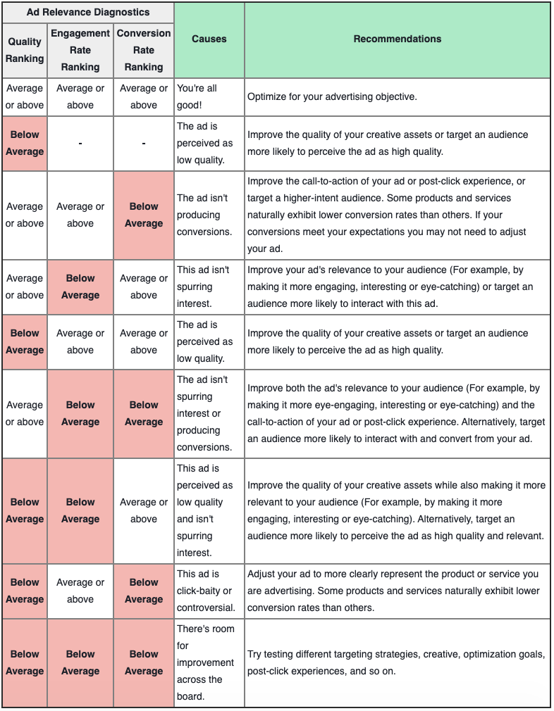 Pracujete s relevancí reklam? Facebook vydal chytrou tabulku na to, jak QS optimalizovat.